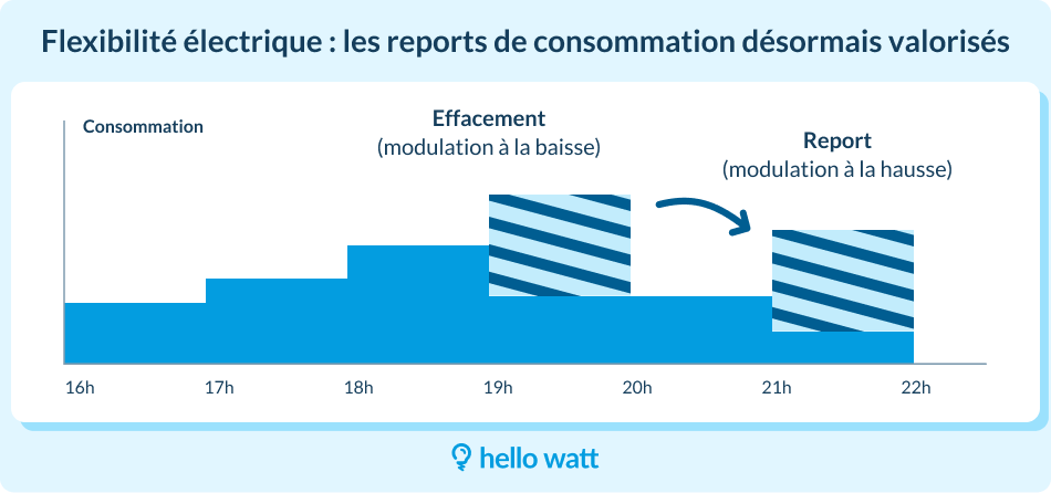 Auparavant, avec le mécanisme NEBEF, seules les baisses de consommation étaient rémunérées. Vous pouviez toucher de l’argent en supprimant purement et simplement votre consommation lors d’un moment de tension sur le réseau. Désormais, le NEBCO rémunère aussi le décalage de consommation, quand vous décalez une consommation au bon moment.