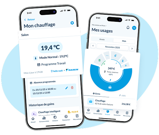 Avec l'app Hello Watt, contrôlez votre pompe à chaleur et suivez sa consommation pour maximiser les économies d'énergie, où que vous soyez !