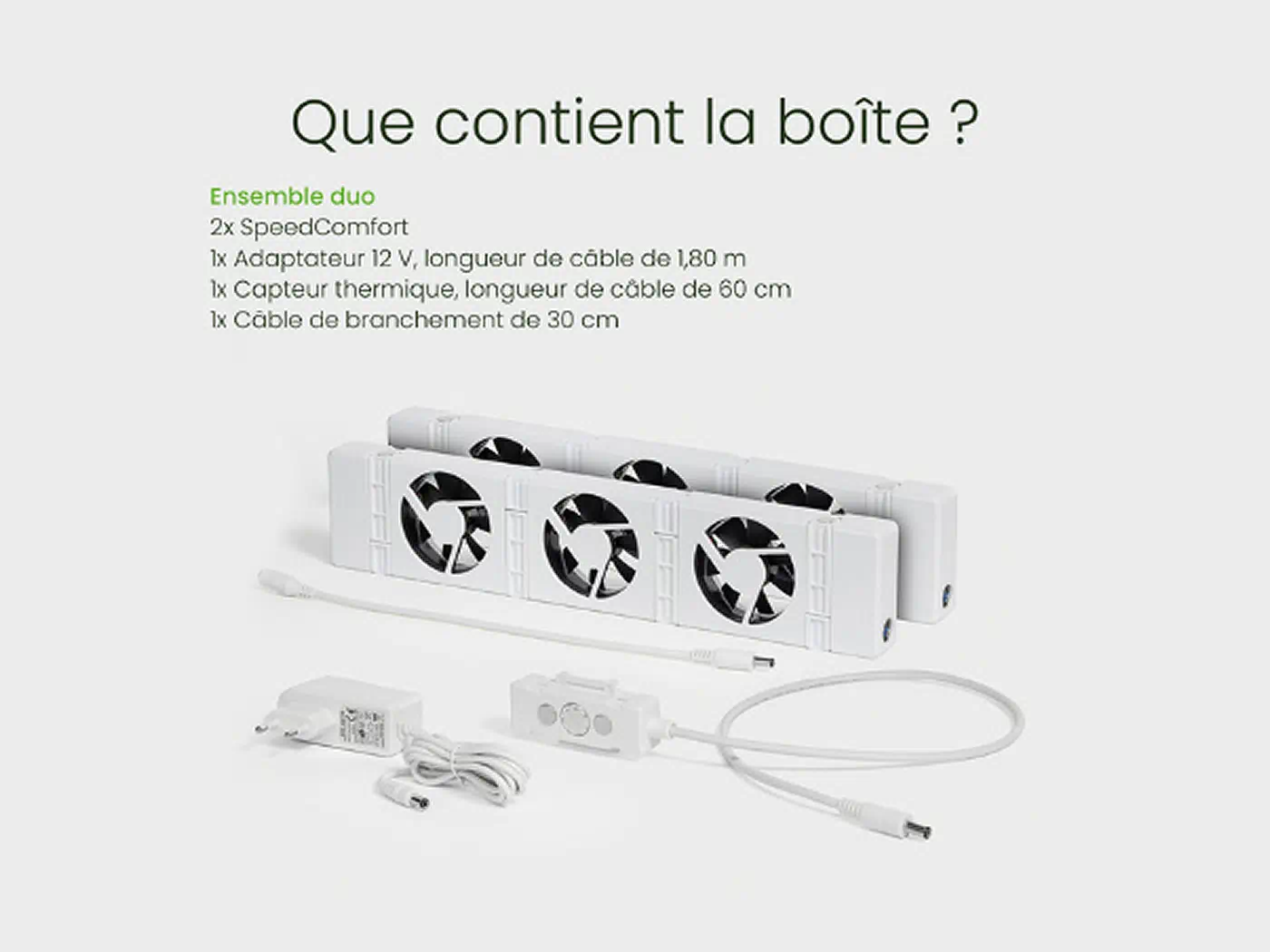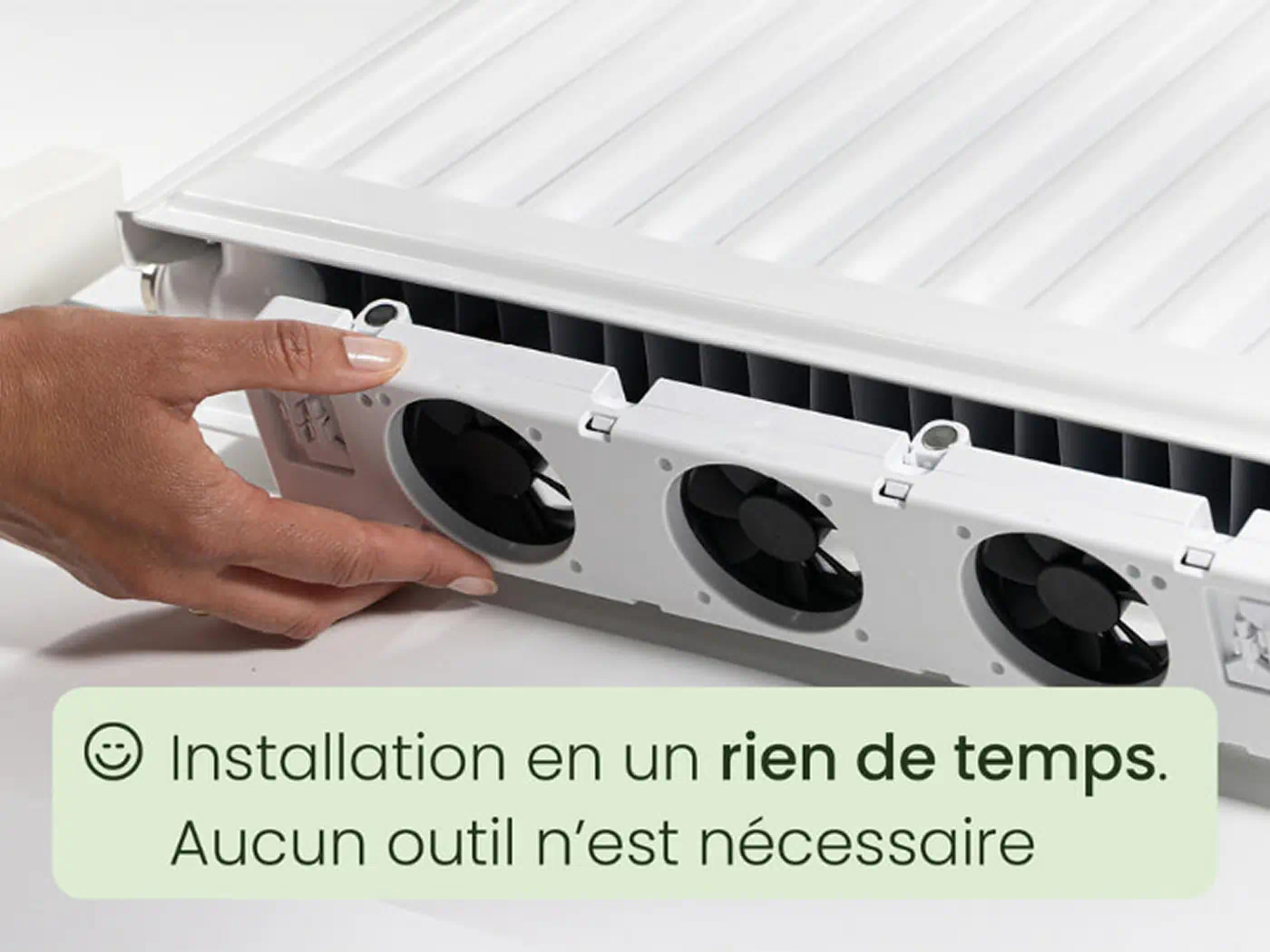 Conçu pour s’adapter aux radiateurs ou convecteurs de 75 à 120 cm, l’ensemble duo de ventilateurs SpeedComfort s’installe en toute simplicité.