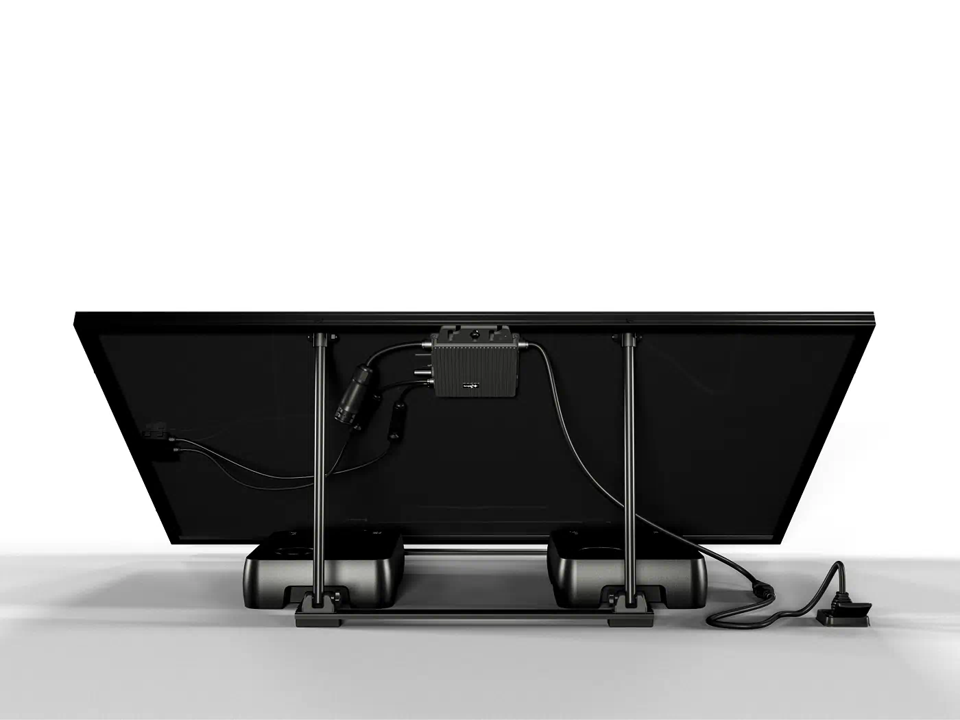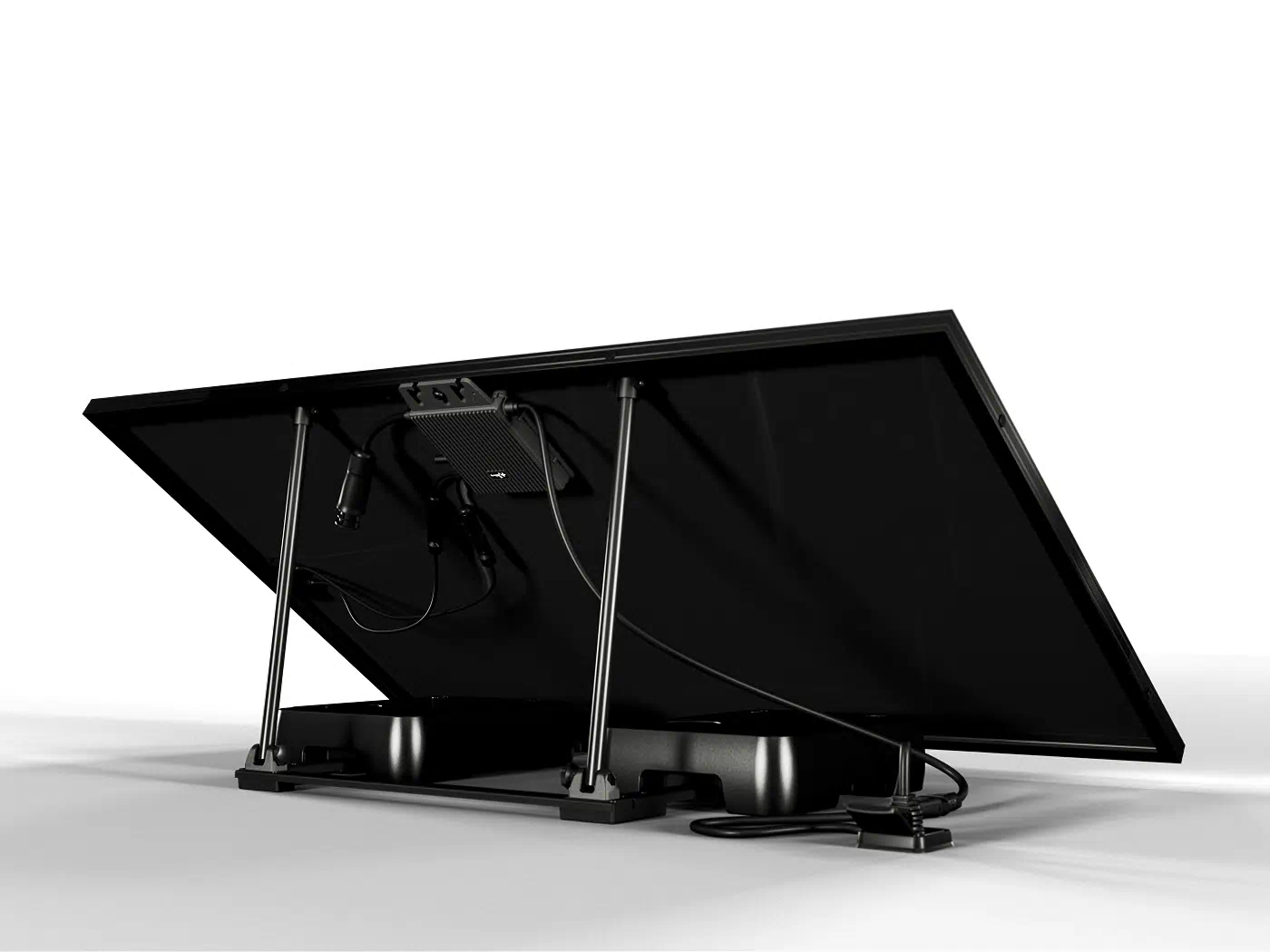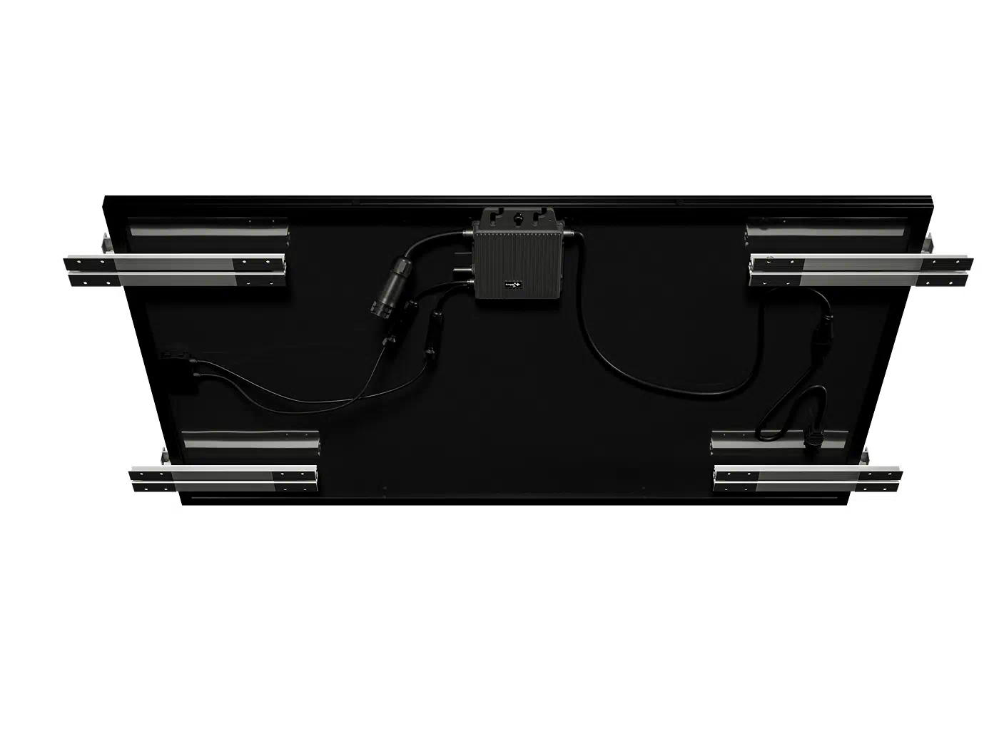 Avec une surface de seulement 1,26 m² pour 15,4 kg, le kit solaire GO a été pensé pour s’intégrer partout, sans aucune contrainte. Son format réduit ne faisant aucun compromis sur les performances, le kit intègre :